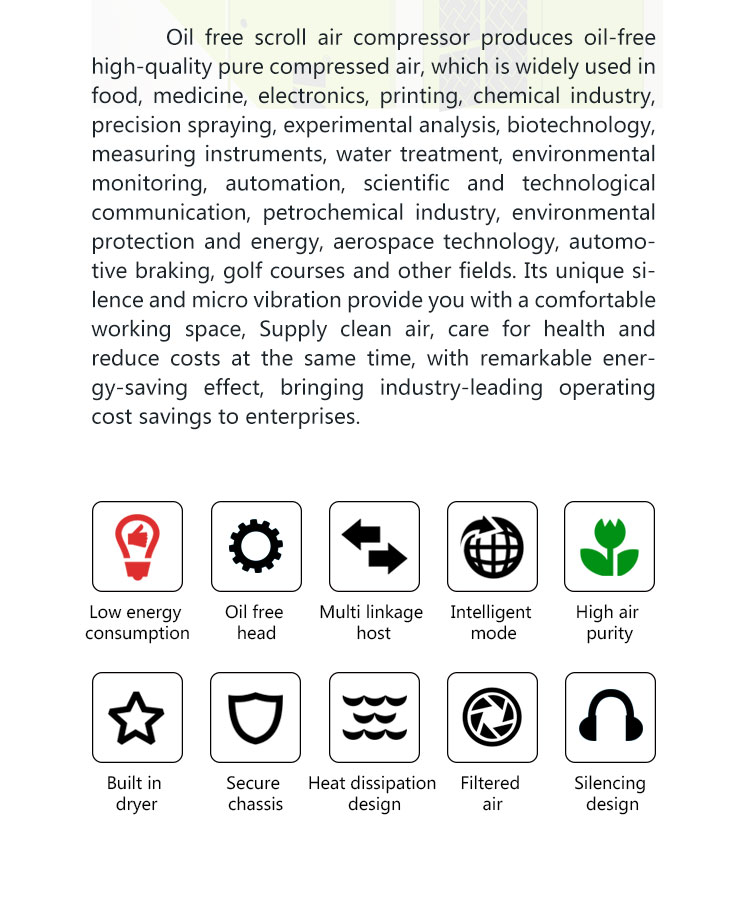 Performance:Low noise, power saving, Oil free environmental protection